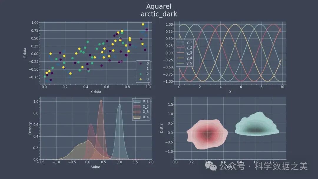 Aquarel是一个轻量级模板引擎,也是Matplotlibs的rcparams包装器,可让绘图样式变得简单。Aquarel模板可以通过编程定义,并以JSON格式序列化和共享。该python库提供12种样式模板。
