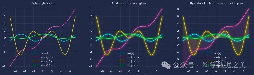 使用这个Python包,不仅可以提供适当的颜色和背景,还可以为图表添加发光效果,只需3行代码即可创建“赛博朋克”风格的图表。