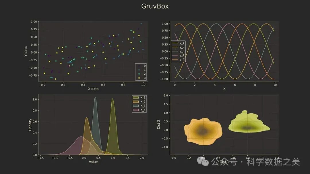 基于Pavel Pertsevs Gruvbox调色板和主题,为Python的Matplotlib绘图库设计了一种简单的深色背景颜色样式。