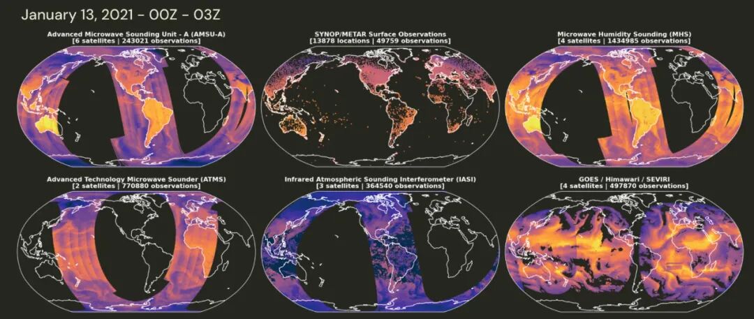 观测数据驱动的AI模型从根本上规避了这些问题。它们可以直接利用来自卫星、地面站、气象气球的最新观测数据,在数据可用后立即生成预报,无需等待长达数小时的数据同化周期。这不仅提升了预报的时效性,也为模型的创新打开了无限可能。