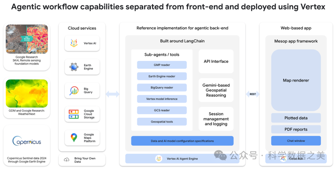 - • 调用谷歌的地理空间基础模型(如遥感模型进行图像分析、PDFM进行人口动态分析)。