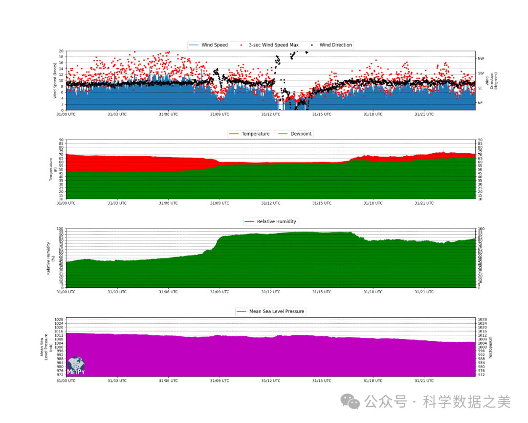 • MetPy: 这是一个气象数据分析和可视化工具。它提供了读取、分析和可视化气象数据的功能,包括创建天气图、探空图等专业气象图表,是气象学家和大气科学研究者的重要工具。