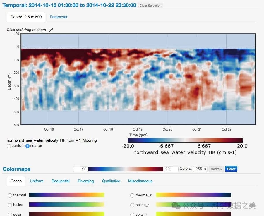 • cmocean: 专为海洋学数据设计的颜色映射库。它提供了一系列反映海洋特性的颜色方案,如深度、温度、盐度等,使海洋数据可视化更加直观和专业。