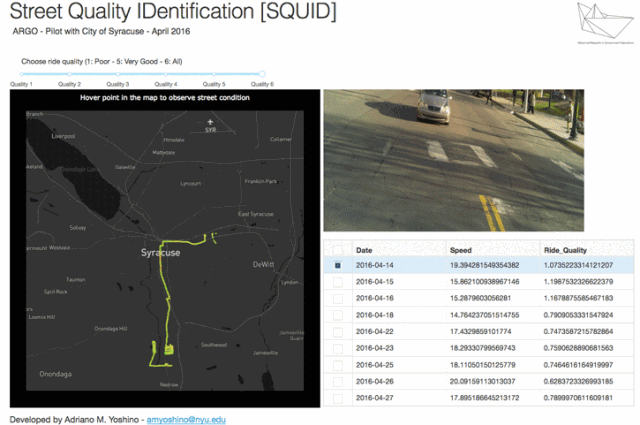 在美国的Syracuse城,市政人员在汽车上安装一种低成本的数据采集装置,在车辆运行过程中每隔1秒时间,拍摄道路路面情况,并采集汽车加速度计和减震传感器数据,来收集道路是否平坦或者坑洼,以更快的对道路进行维护,这实际上属于智慧城市的领域。