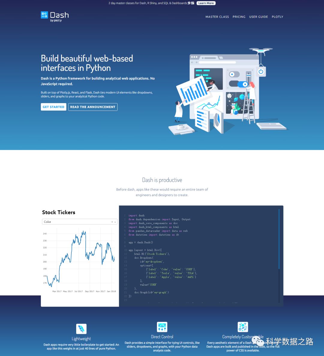 Plotly Dash是一个基于Web浏览器的应用程序、用于数据分析的Python库。最初,Plotly在GitHub上公布了Dash的概念模型,经过长时间持续的开发,Plotly发布了作为企业级解决方案和开源工具的Dash。Dash项目可用于数据分析、数据挖掘、数据可视化、数据建模、仪器控制和报告。这是一个轻量级的项目,只有短短的40行Python代码,并且提供了一个用于操作UI控件的界面,包含可拖动的滑块,下拉列表和带代码的图形等等。最重要的是Dash是完全可定制化开发的开源工具库。